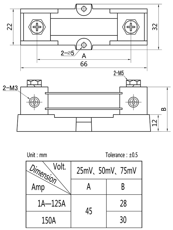 • .Temperature rise: Electrify the shunt with rated current for 2hr, test it after temperature rising stable, the temperature rise should be≤80K when the rated current under 100A; and should be ≤120K when the rated current higher than 100A.